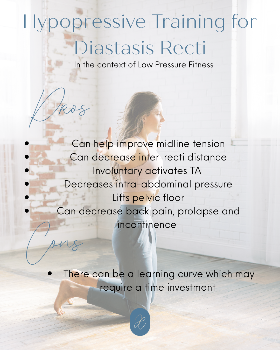 The hypopressive maneuver is beneficial in and of itself, but my true preference is to utilize it within the Low Pressure Fitness framework. I discuss the differences in my blog “What is Low Pressure Fitness”.